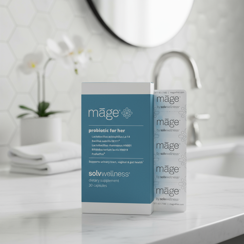 Māge is a women’s probiotic with scientifically balanced ingredients designed to target the female pelvic triangle: the gut, vagina, and urinary tract.